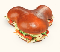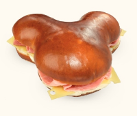 Non è una pizza bensì un sandwich con la forma della testa di Mickey, un panino bretzel molto soffice e mollicoso (decongelato) farcito in due modi: