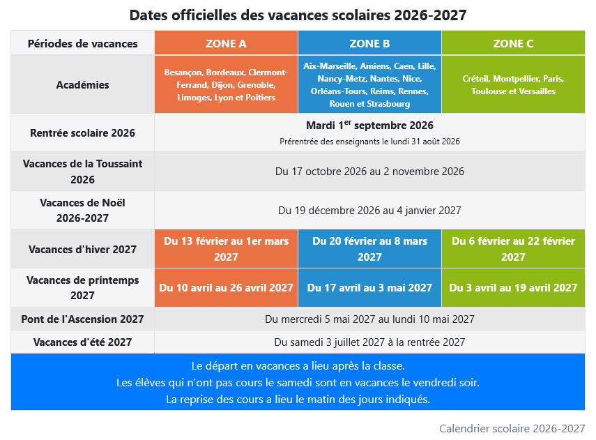 Nel 2026/2027, in tutte le regioni francesi l' anno scolastico inizia il 1 Settembre.