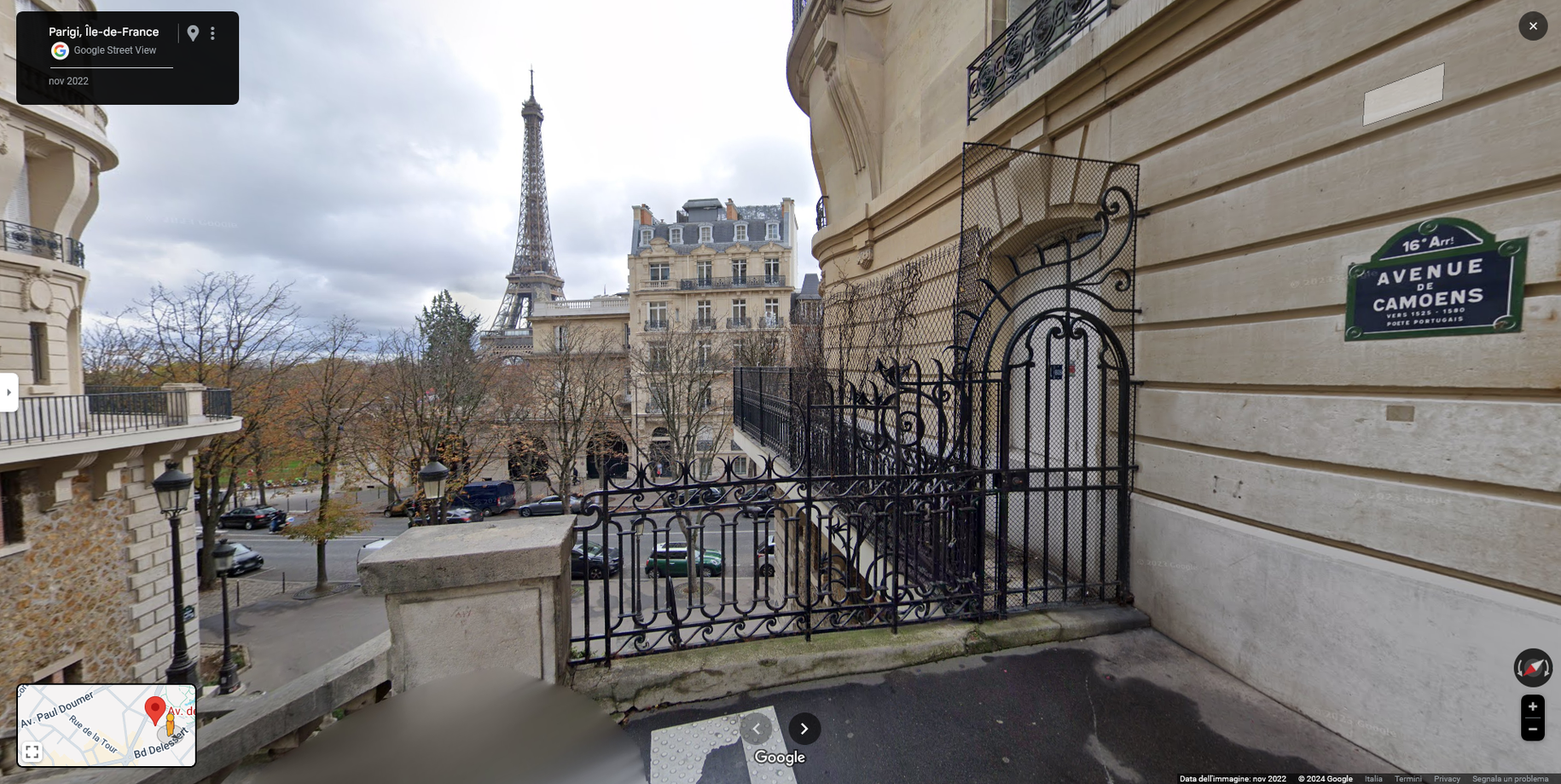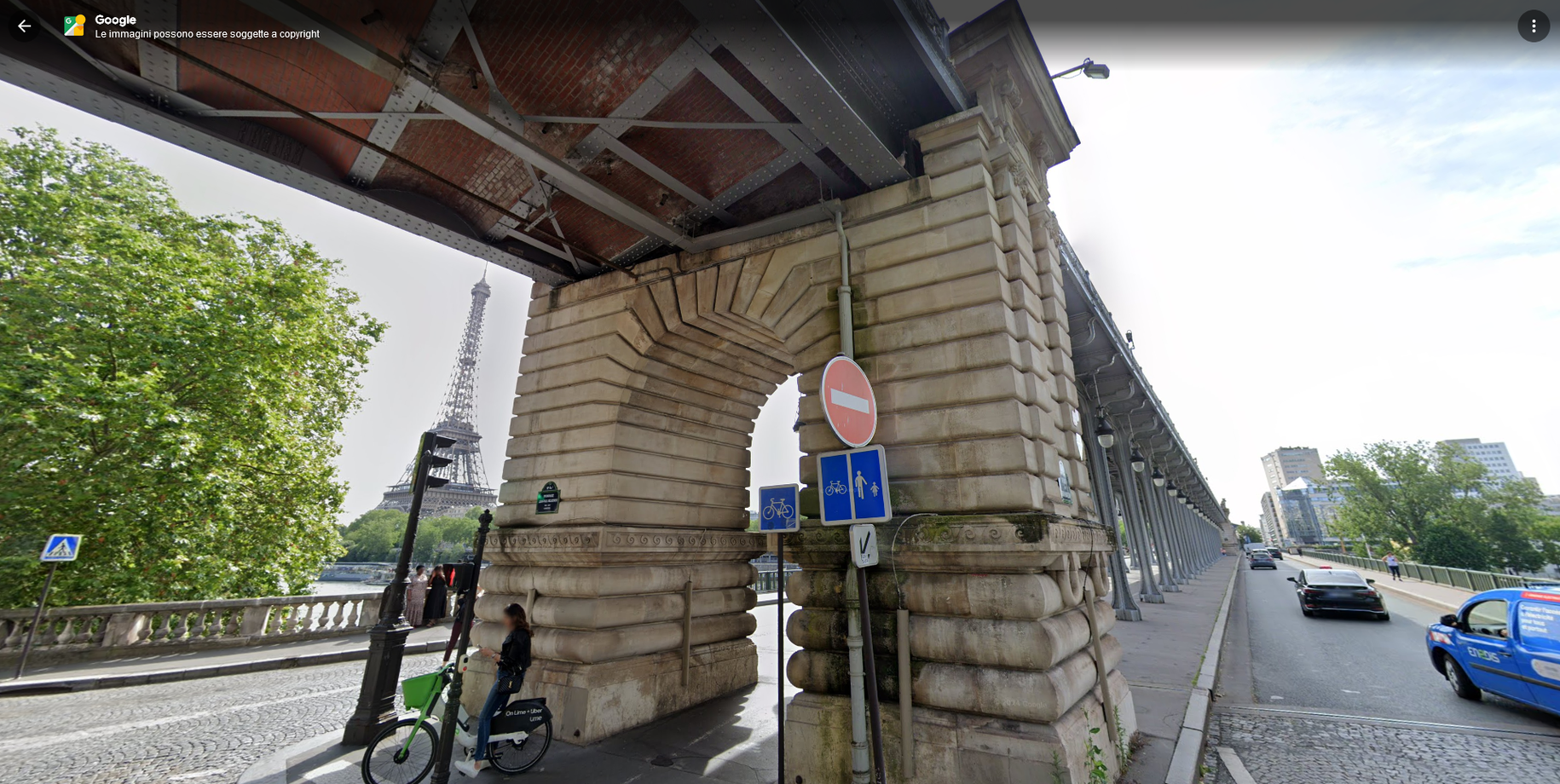 Ci arrivi girando a destra da sotto la torre, con Trocadèro alle spalle.