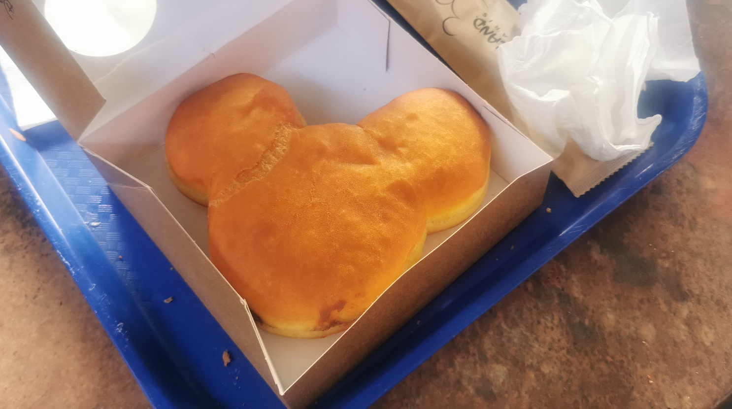Non è una pizza bensì un sandwich con la forma della testa di Mickey, un panino bretzel molto soffice e mollicoso (decongelato) farcito in due modi: