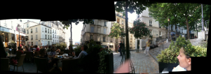 Si prosegue il tour per le stradine nei dintorni di place du Tertre, con i negozi di souvenir e i tavolini dei ristoranti che hanno preso il posto dei finti artisti e pittori. L’ atmosfera è troppo turistica, troppi turisti in cerca delle icone della Parigi turistica, che sono felici di trovare.