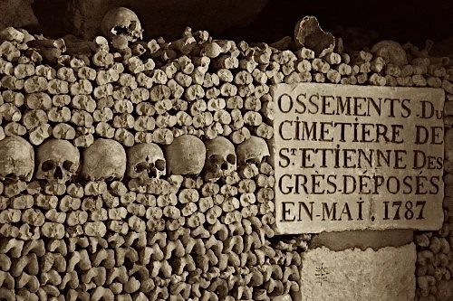 All’ entrata c’ è scritto “fermatevi, qui è il regno della morte”, e vi vengono conservate le ossa di sei milioni di parigini, sistemate in ordine, esumate e trasferite qui due secoli fa dagli affollati cimiteri, causa di fetore, pestilenze e malattie.