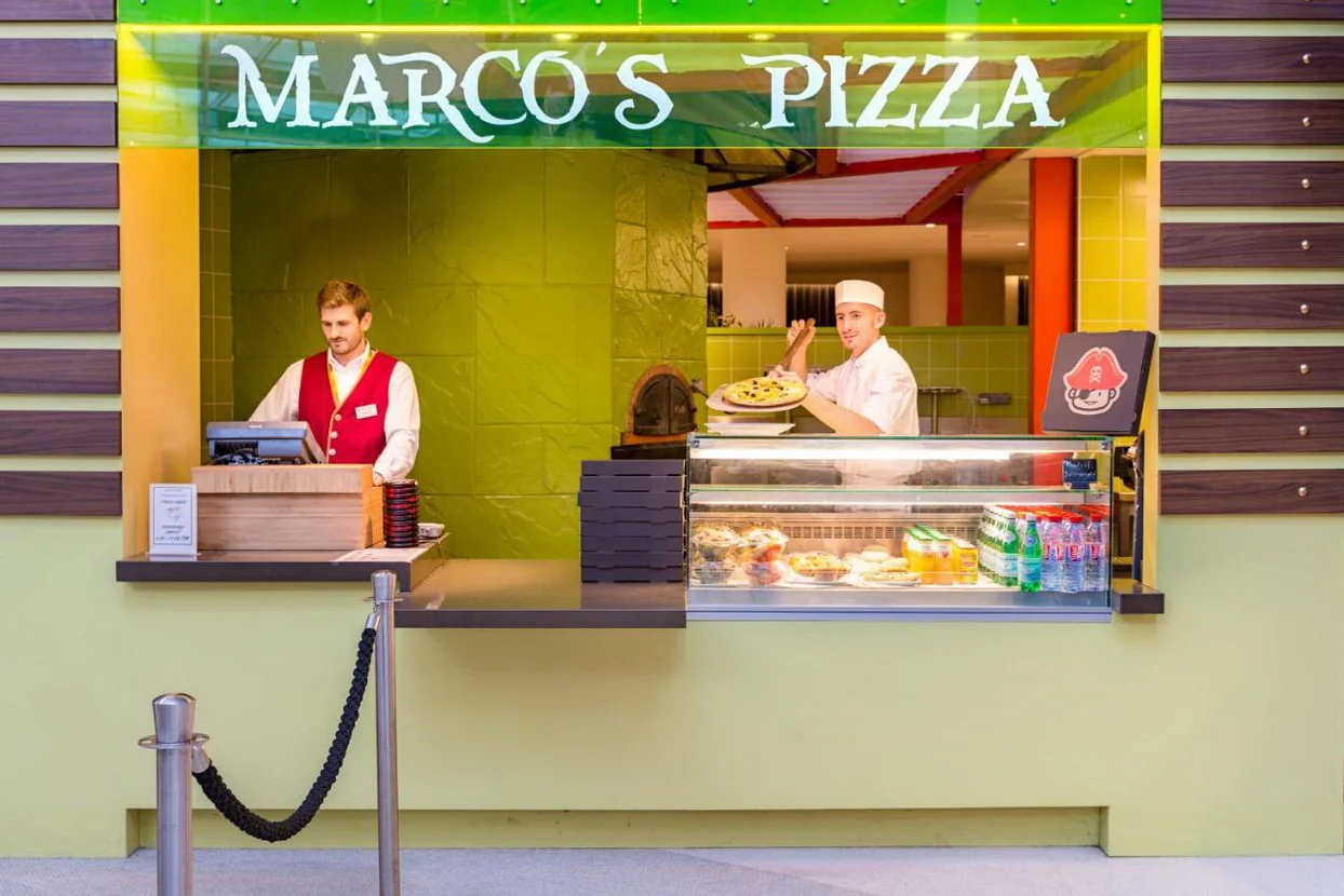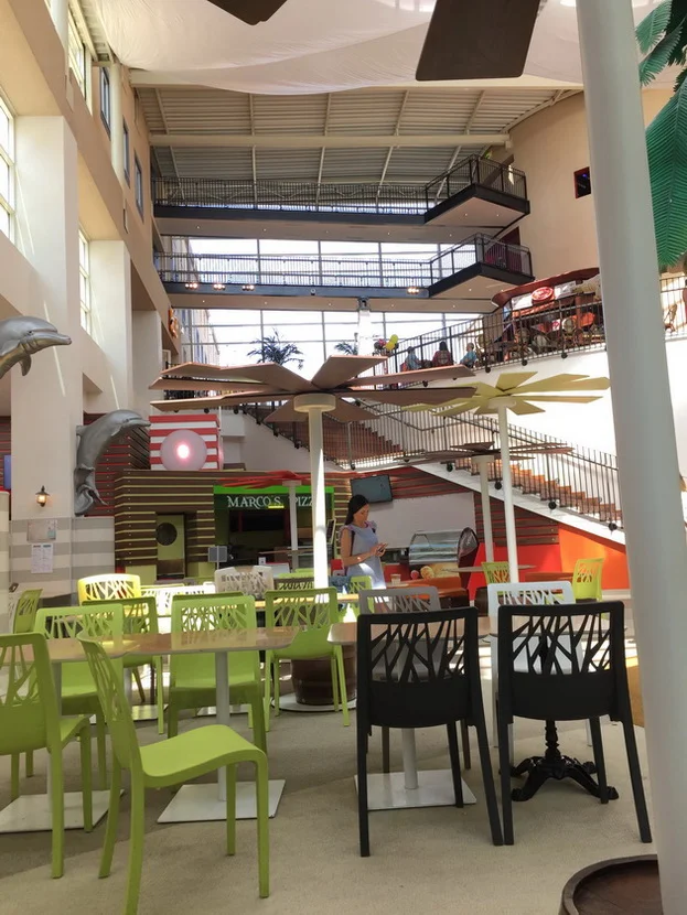 Gli spazi comuni e la reception sono molto spaziosi ed è disponibile una zona ristorazione con un bar (ma non aperto la sera) un ristorante (un po' caro per quello che offre), un angolo pizzeria (14€, rimanda a quando rientri a casa) e una boutique.